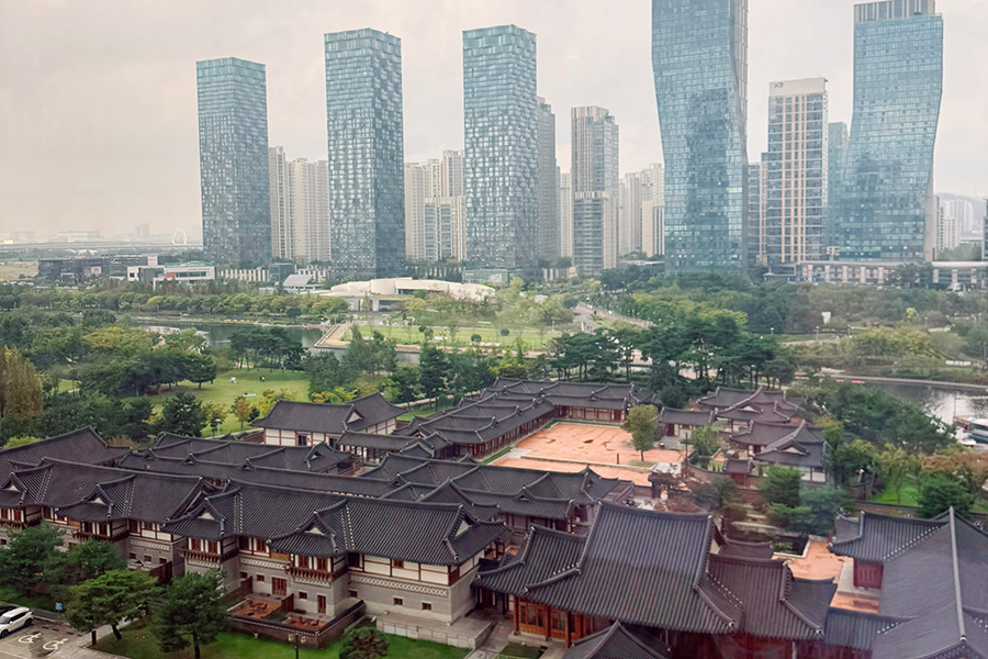 송도 한옥마을 뷰가 함께 보이는데