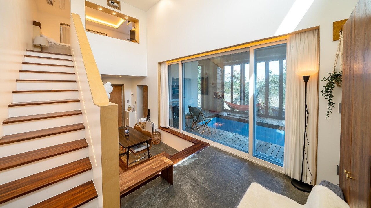 복층형 : 1층( 주방+거실+화장실+자쿠지+수영장) / 2층( 침실(퀸베드)+화장실+미니거실)