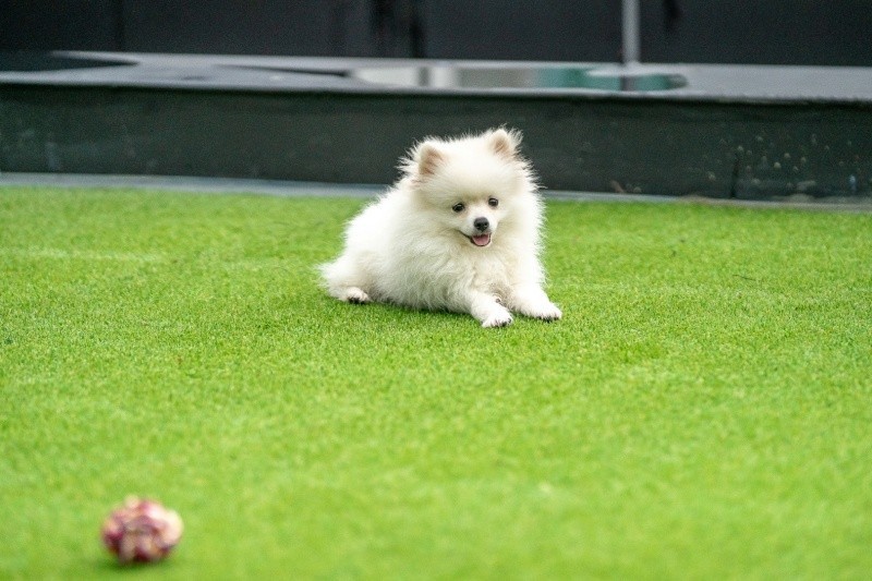 까망베르의 애견테마 전 객실 앞에는 애견들이 놀 수 있는 개별 인조잔디가 있습니다.