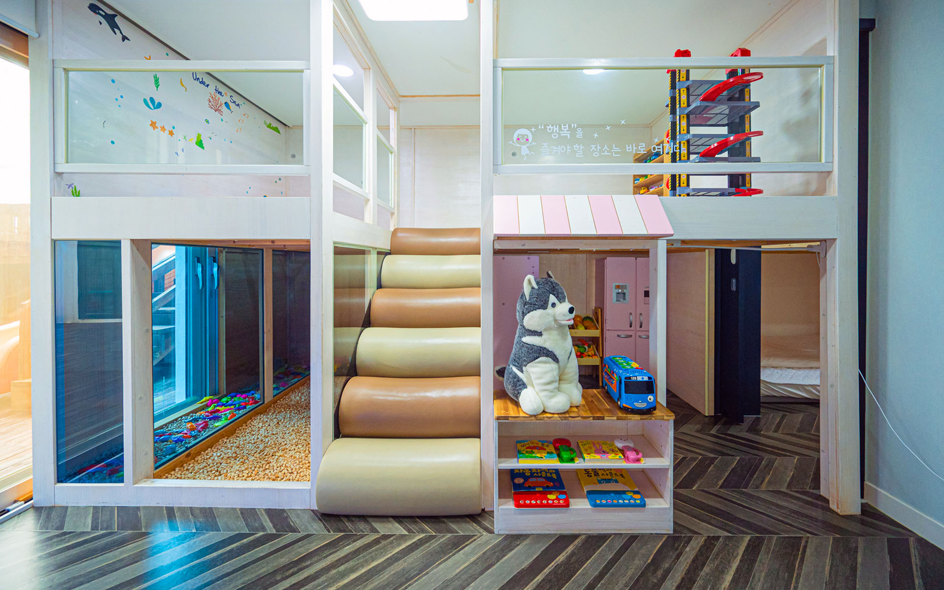 [숙소소개] 숙소 소개 : 우리만 있는 완전한 독채, 실내 온수풀이 있는 이층집 구조로 마당 전체를 데크로 편안하게, 프라이빗한 공간, 우리만의 행복한 시간을 즐기세요