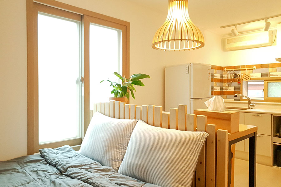 •로망스 스위트는 최대4인까지 가능한 투룸이며 대문안 작은 마당이 있는 객실입니다. 중형견까지 가능합니다.